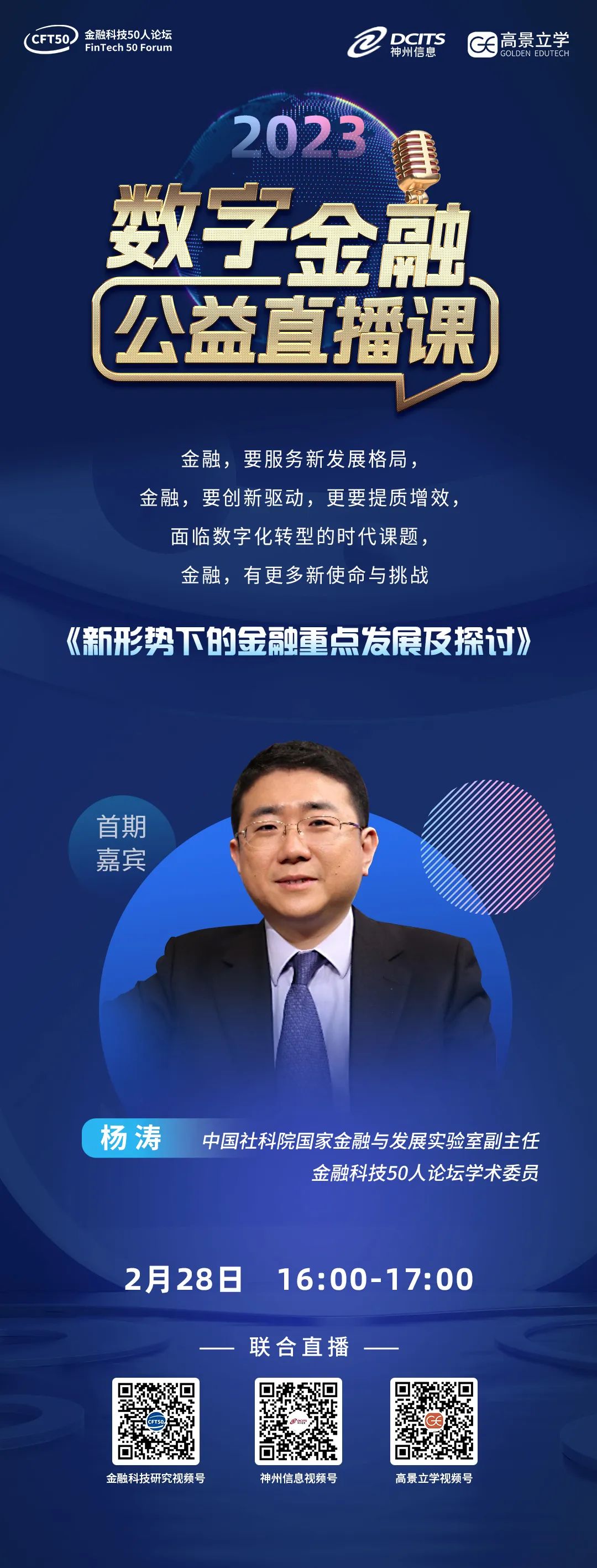 直播预告 | 中国社科院国家金融与发展实验室副主任杨涛主讲,数字金融公益直播课即将上线!